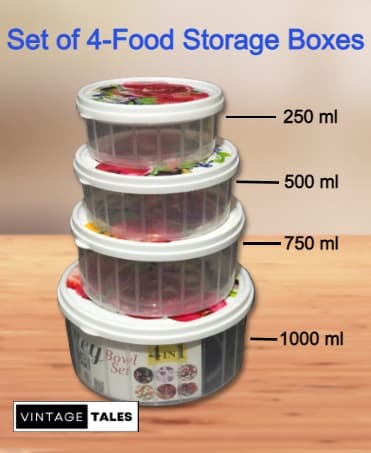 Organize and store your food easily with this 4-piece storage box set in different sizes, perfect for all your storage needs.