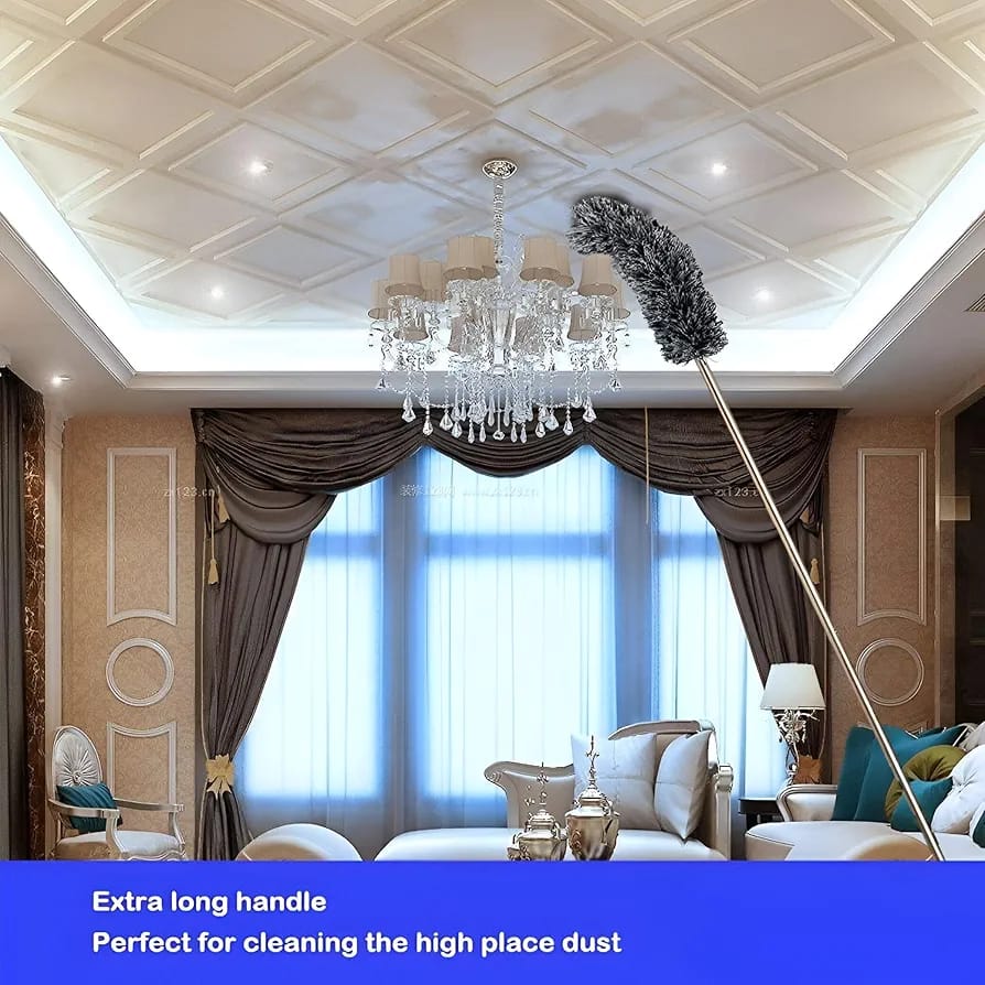🧹 Extra-Long Extendable Handle – Easily reaches ceiling fans, high walls, corners, and cobwebs without ladders.
